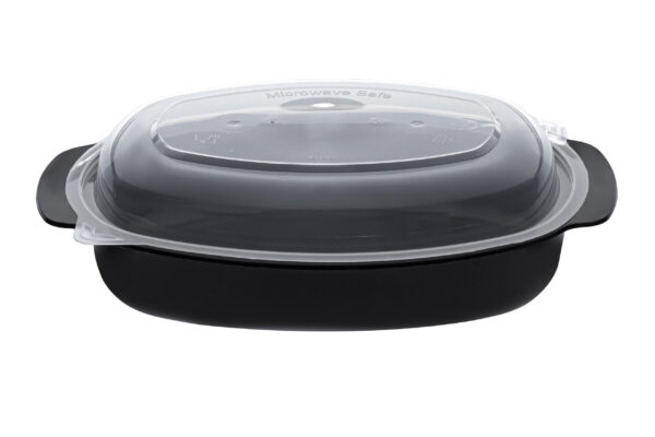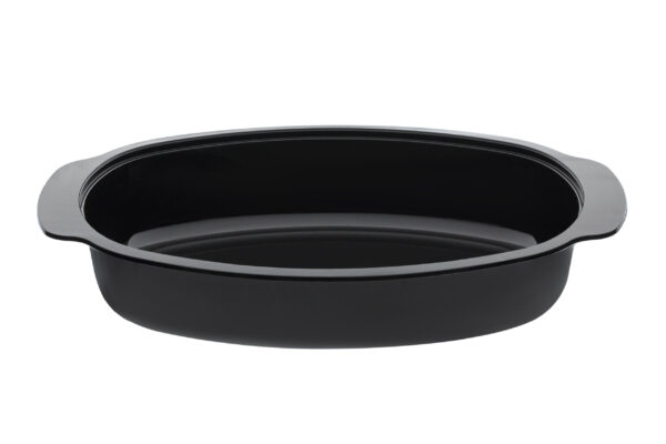 Пластмасови черни овални кутии за храна за еднократна употреба за заведения за бързо хранене, ресторанти, ХОРЕКА, пицарии и сладкарници. Подходящи за топли и студени храни, меса, сосове, риба, салати, десерти и др. Подходящи и за микровълнова фурнаВместимост750 мл (22х12,1х6,4 cm), 950 мл (22х12,1х7,5 cm)ОпаковкаСтек (50бр.), Кашон (150бр.) 3х50бр.