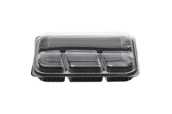 Пластмасови черни кутии за храна за еднократна употреба за заведения за бързо хранене, ресторанти, ХОРЕКА, пицарии и сладкарници. Подходящи за топли и студени храни, меса, сосове, риба, салати, десерти и др. Подходящи и за микровълнова фурнаОпаковкастек (50бр.), кашон (200бр.) 4х50бр.